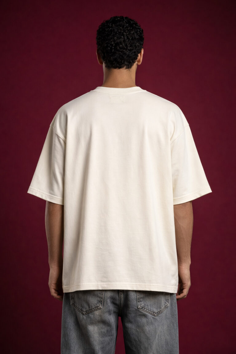 Premium Comfort & Fit Crafted from high-quality, breathable cotton-blend fabric, this t-shirt features a heavyweight oversized silhouette. The drop-shoulder design provides a relaxed drape that looks effortless on all body types. The off-white/cream base color offers a vintage, “eggshell” feel that is much softer and more versatile than a standard stark white tee.